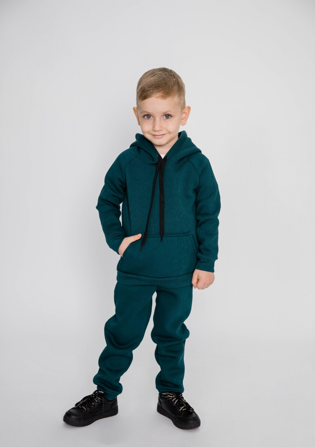 Купить оптом 296-И. Свитшот с капюшоном + Штаны, хлопок 65%, 35% ПЭ, 3-х нитка (начес) изумрудный 122,128,134,140 в Вологде