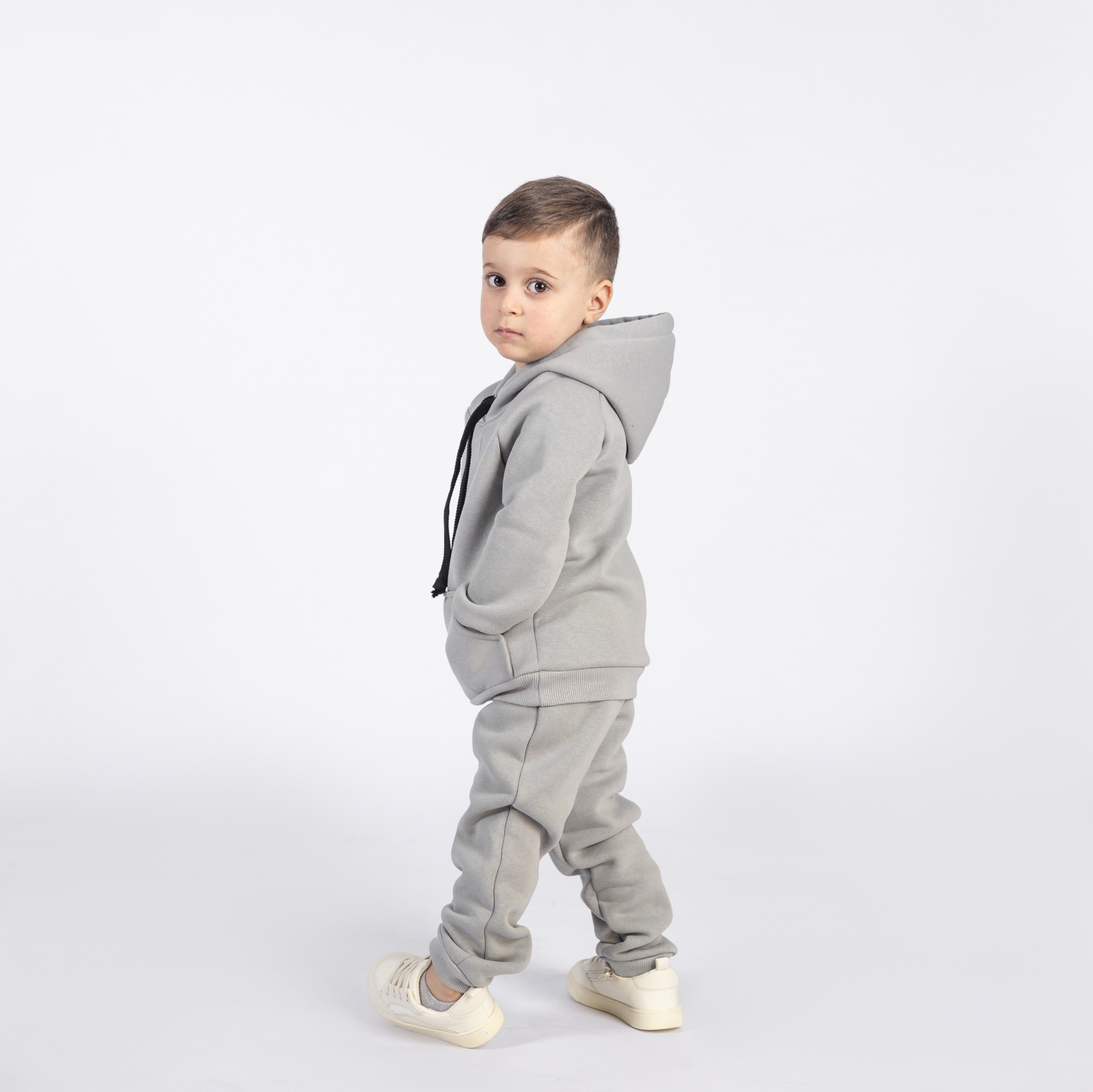 Купить оптом 296-С. Свитшот с капюшоном + Штаны, хлопок 65%, 35% ПЭ, 3-х нитка (начес) серый 146,152,158 в Вологде