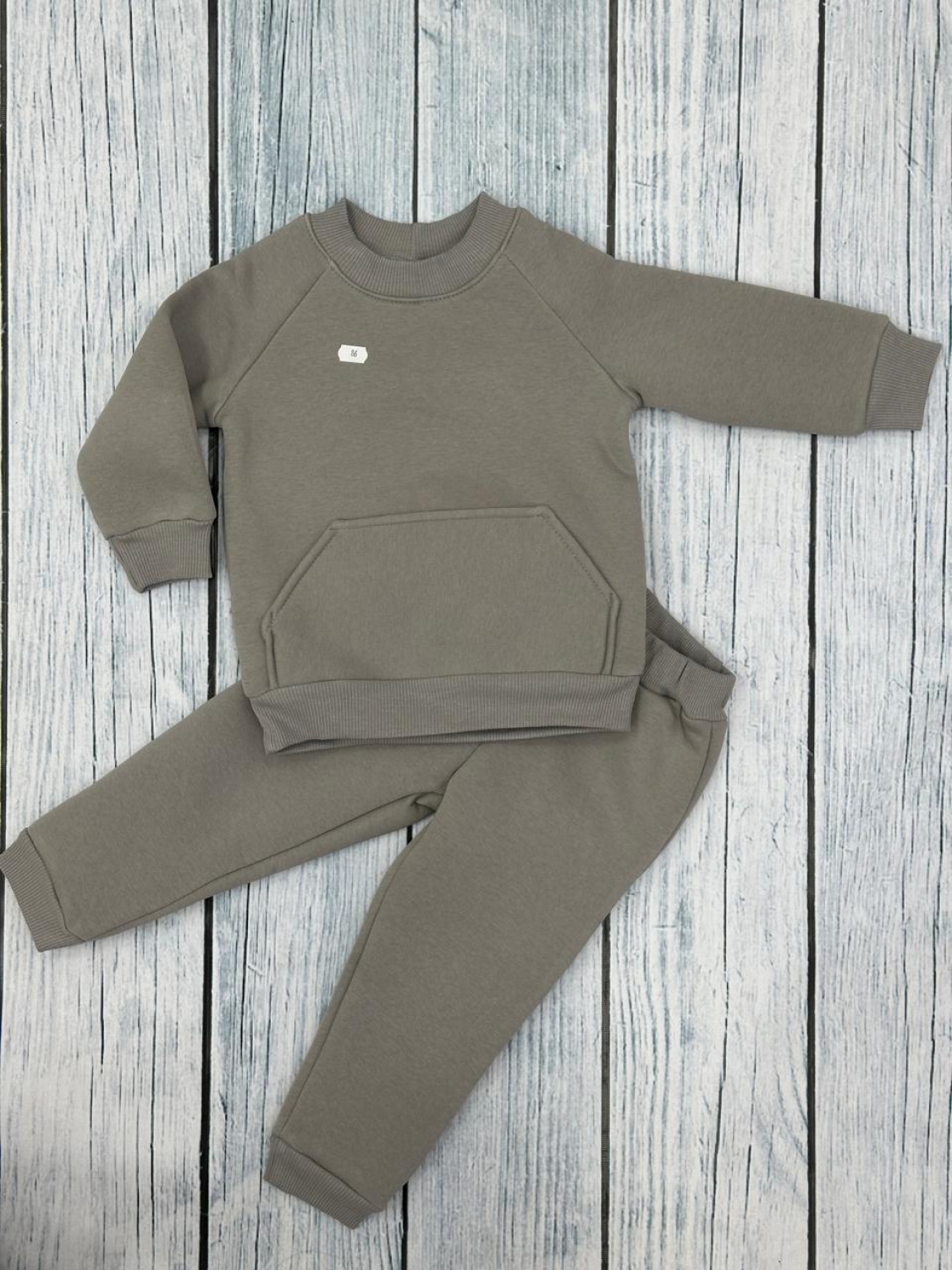 Купить оптом 297-СЕР. Свитшот + Штаны, хлопок 65%, 35% ПЭ, 3-х нитка (начес) серый ,80,86,92,98,104 в Вологде