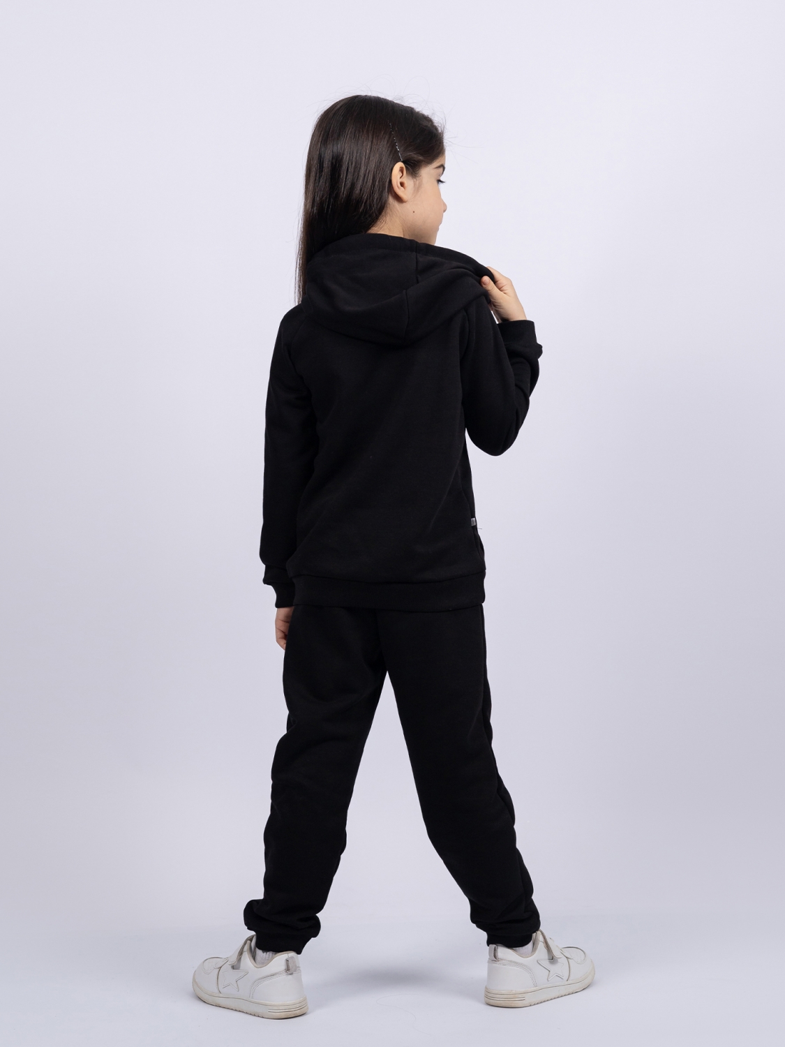 Купить оптом 311-Ч. Свитшот с капюшоном + Штаны, хлопок 65%, 35% ПЭ, 3-х нитка ( без начеса) черный 122,128,134,140 в Вологде